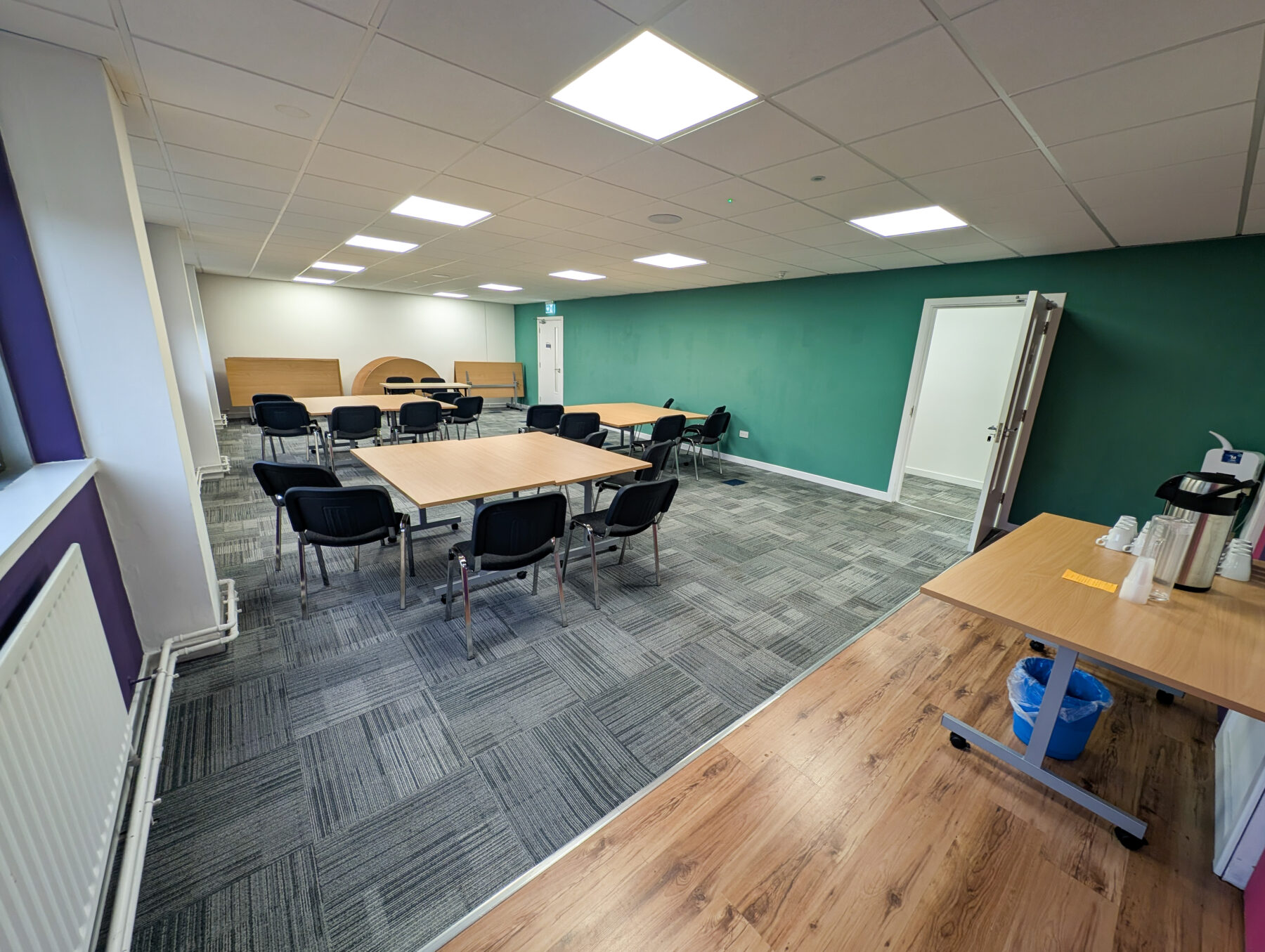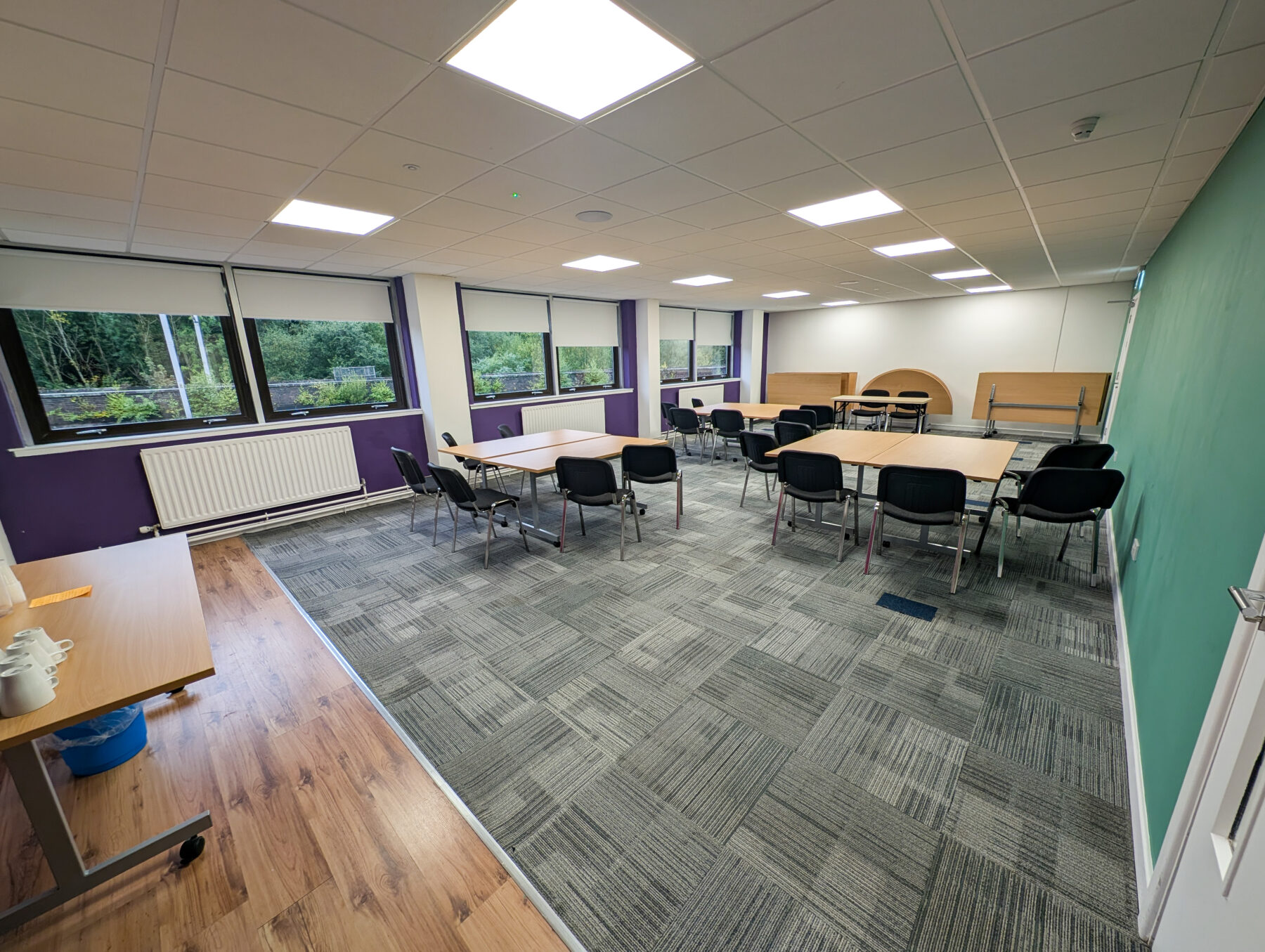 Suitable for up to 18 people with tables or up to 30 people with just chairs for a conference setup.