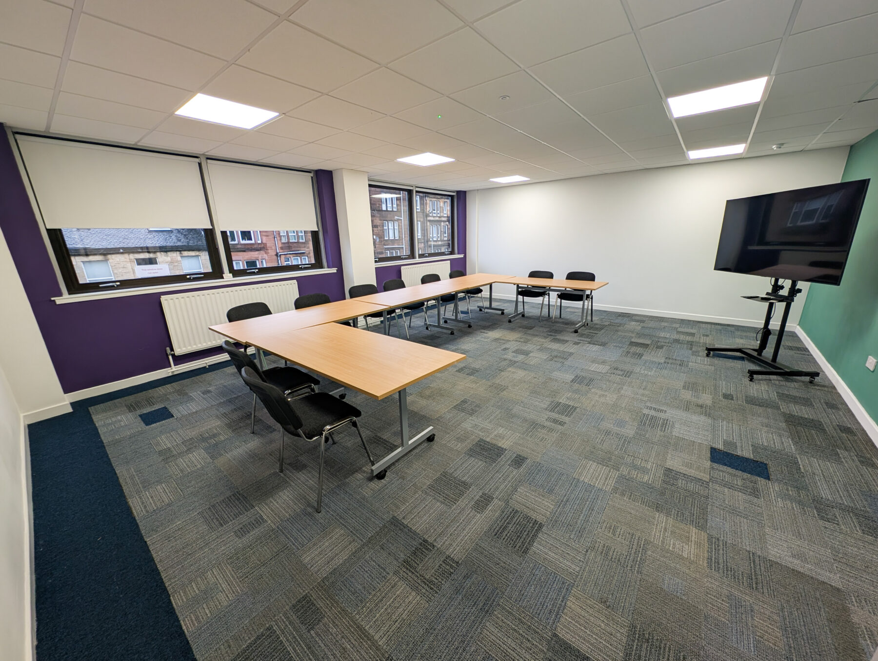 We have a variety of room sizes available so check out the spaces below (click the images for full view) and if you’re interested in finding out more or booking a room, please contact [email protected] or call 0141 258 4868 (Ext 2)