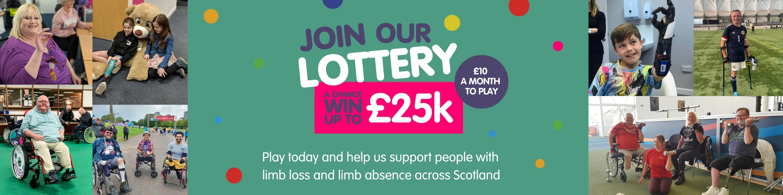 When you play the Finding Your Feet Lottery for just £10 a month, you’re helping us provide peer support, counselling, well-being services and inclusive clubs and activities for people affected by limb loss or limb absence across Scotland.