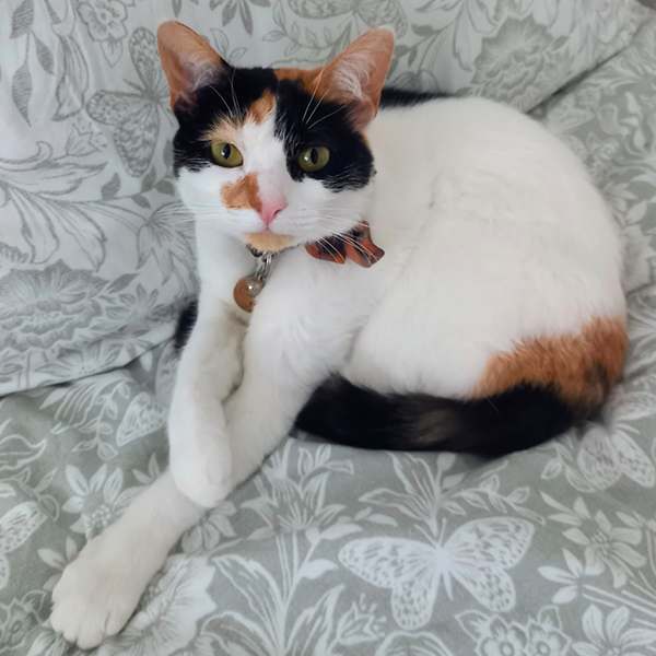“Hi I’m Callie and I’m a 4 year old Calico tortie. I was out for a wander in February 2023 when I found myself under the front wheels of a car. I was rushed to the vet and given the best emergency treatment but they were unable to save my leg. Sadly after x rays the vet found my three baby kittens which they couldn’t save. I got lots of care from Cat Protection and they introduced me to my new mum. I found my paws right away and I do everything other cats do, but better of course! Love, Callie”