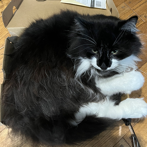 Harry is a sweet 3 year old rescue cat who loves the great outdoors (not in winter). He allows selective few to pet him and ekes out his love in measured doses. Presents arrive on the doormat more often than Amazon! But we love him and wouldn’t change a thing about him.