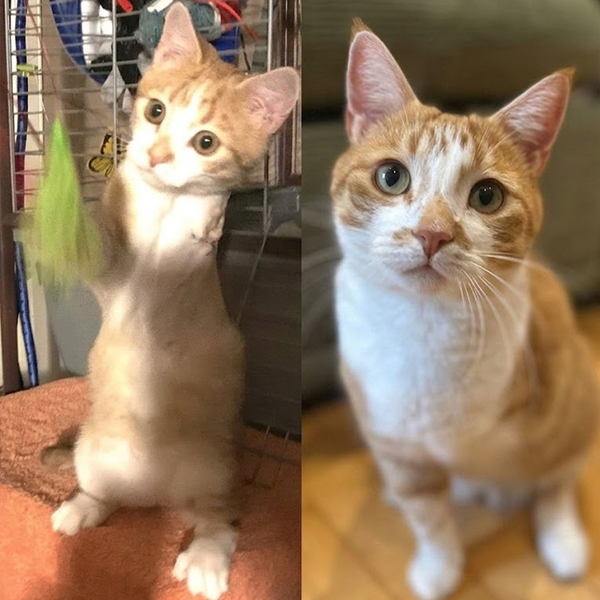 Peanut is a big, adventurous, resilient, boisterous boy, who loves to jump, run and play. Peanut was rescued when he was just a couple of months old. He lived with his brother on a scrap of wasteland near a car wash. The rescue charity (Cat Action Trust) were called when Peanut was hit by a car. The injury meant he needed his front leg amputated. Following a few months rehabilitation, we adopted both Peanut (and his brother) and this once feral boy was transformed into a cuddly purr machine.