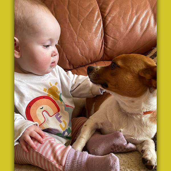 Potter is 11 months old & such a lovely boy with endless energy. Winnie Louise is my granddaughter, she’s 9 months old. It’s lovely to see they’re growing up together & love each other very much.